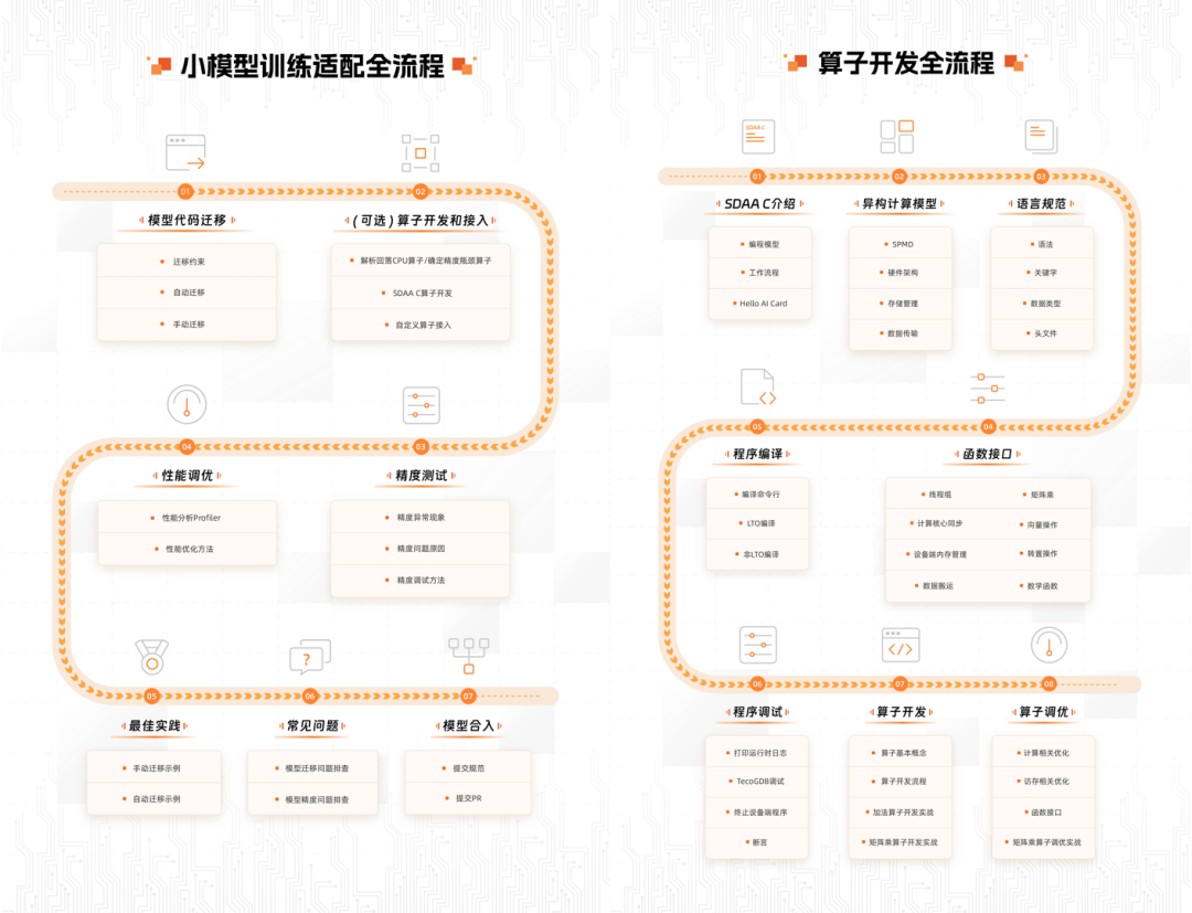 產(chǎn)品文檔中心推出基于用戶真實(shí)開發(fā)場(chǎng)景的學(xué)習(xí)地圖。將模型適配、算子開發(fā)等高頻場(chǎng)景任務(wù),串聯(lián)成邏輯嚴(yán)謹(jǐn)?shù)闹R(shí)圖譜,用戶無需自行梳理知識(shí)脈絡(luò),減少零散學(xué)習(xí)的摸索時(shí)間,實(shí)現(xiàn)更高效地系統(tǒng)學(xué)習(xí)。